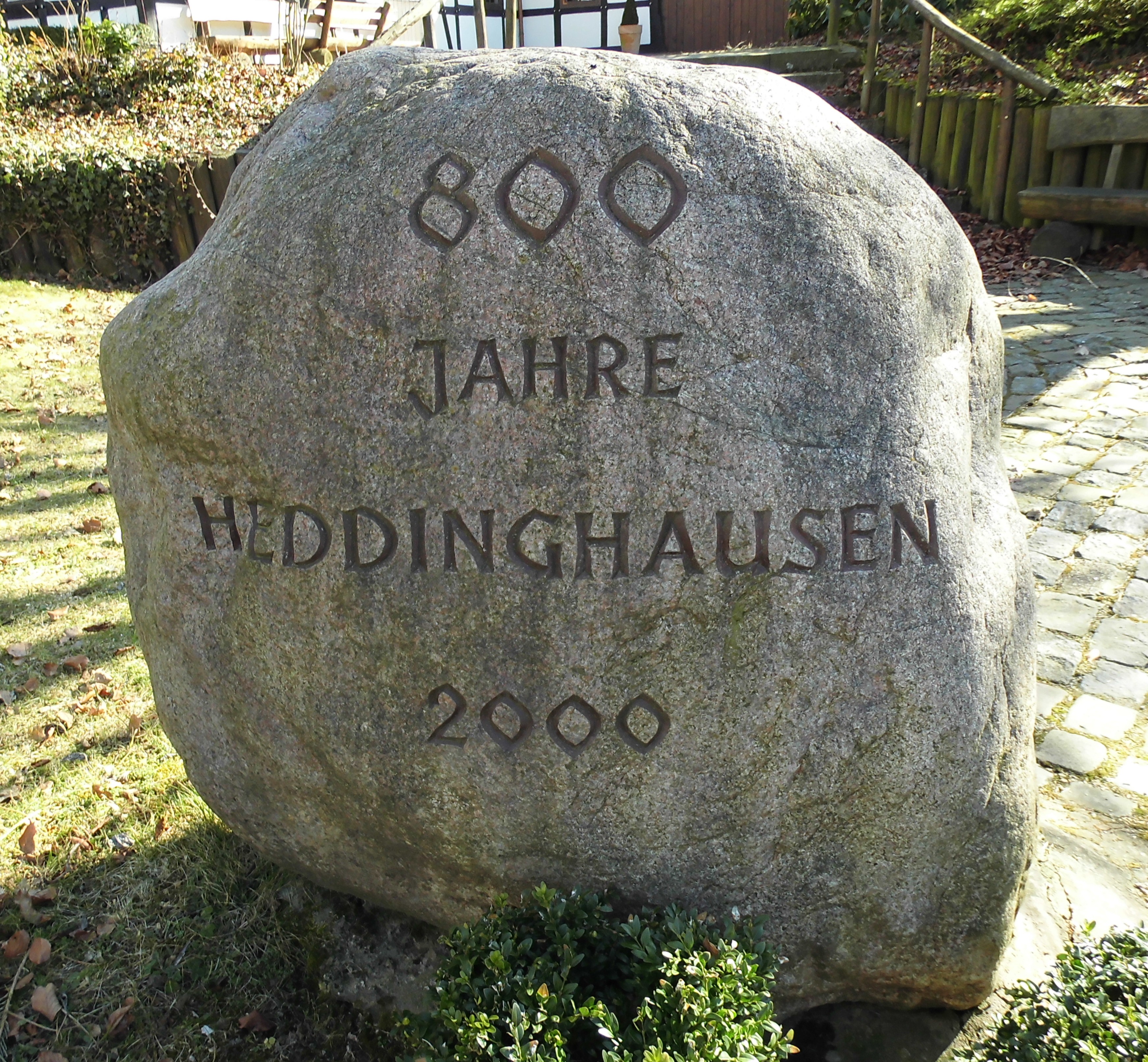 Zu diesem Anlaß wurde auch ein Gedenkstein vor dem Backhaus des Heddinghauser Kern, einer Nachbarschaftsgemeinschaft in Heddinghausen, plaziert.